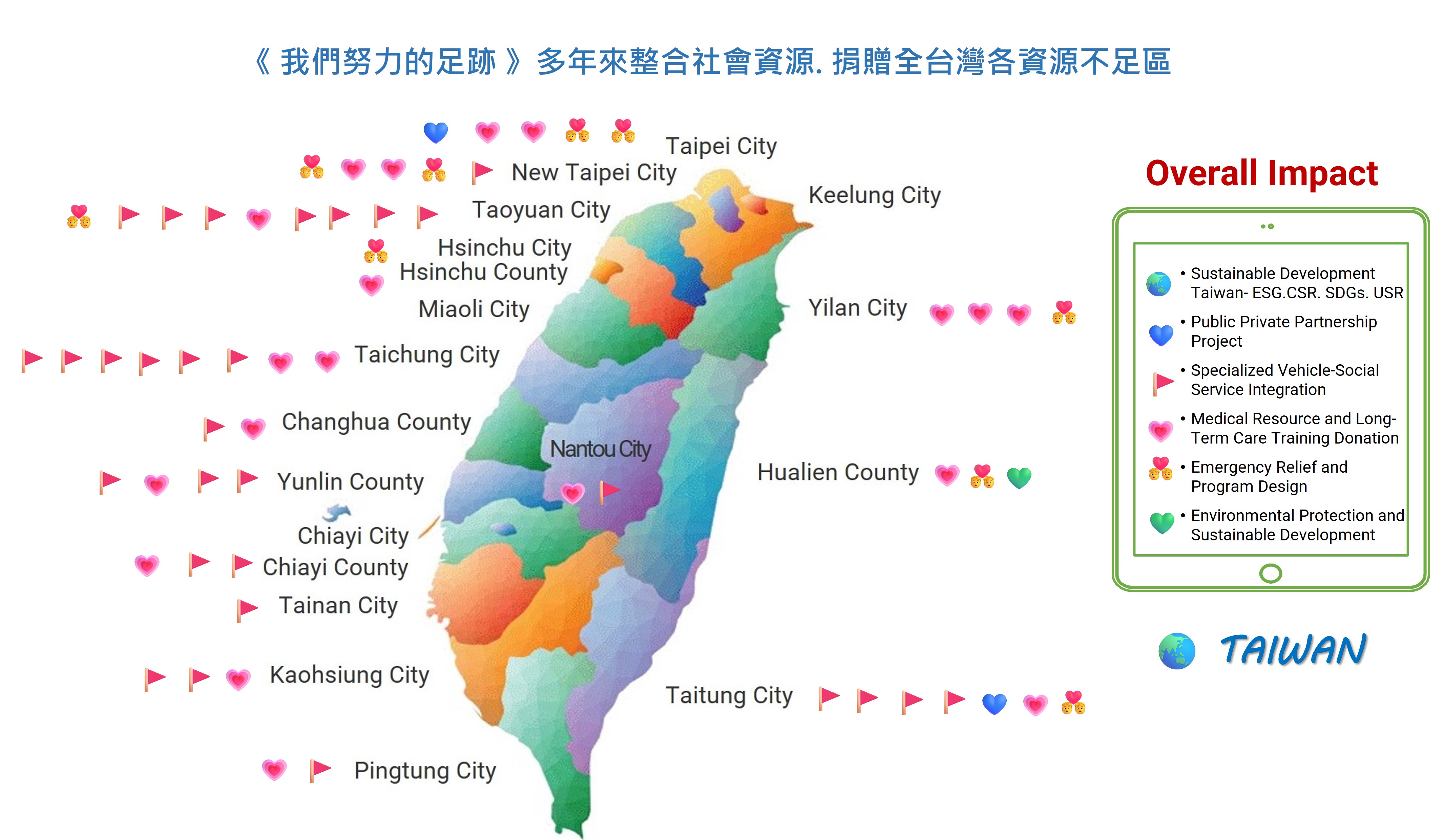 ▶ 數年來我們努力過的美好之事. 社會資源整合與捐贈台灣各地